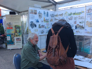 Back in Buenos Aires, I return to draw some emblematic porteño landmarks, such as this Art Deco covered market and the El Ateneo bookshop housed in a former theater, in the company of the children's book illustrator Alexandra Clutterbuck.