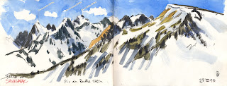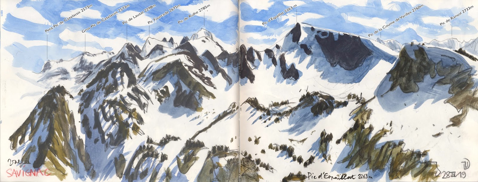 Every day, hundreds of ill-equipped and uninformed people embark on a demanding 20km hike with 700m of ascent on the last two kilometers to Lago de Las Tres, to take a selfie in front of the iconic FitzRoy. For my part, despite the constant wind and the length of the hike, I managed to make 9 panoramic sketches
