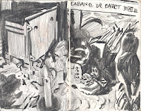 Je leur préfère le calme et la contemplation des montagnes, les couleurs du ciel et la compagnie des oiseaux.Chaque année pour le jour de l'an j'essaye de faire une virée en montagne. C'est devenu une respiration.Je choisis autant que possible un spot qui offre une vue bien dégagée dans plusieurs direction pour pouvoir produire le plus de dessins pendant un séjour toujours trop court.Cette année je suis allé au Col de Portet d'Aspet, sur la limite de départements entre Ariège et Haute-Garonne, puis j'ai marché sur la crête vers le sud. J'ai atteint la modeste cabane du Bazet où j'ai établi mes quartiers.Le lendemain je suis simplement monté au Puech à 1669m, un promontoire modeste lui aussi par l'altitude mais qui offre un panorama très ouvert.